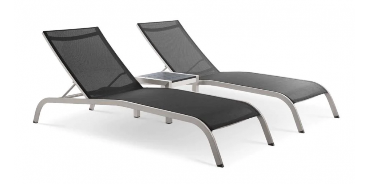 Weight Capacity: 661 lbs. Set Includes: One - Shore Side Table Two - Aegean Outdoor Patio Mesh Chaise Lounge Chair.